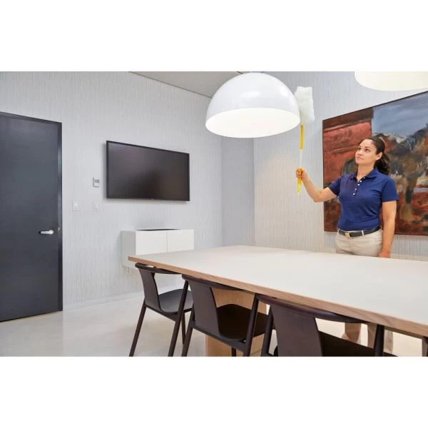 3M Easy Trap Flip Holder, 4″ x 23″ – The 3M™ Easy Trap Flip Holder forms a light weight and efficient dusting system when used with 3M™ Easy Trap Duster disposable sheets. Just clamp dusting sheet onto the flip holder and start cleaning almost any horizontal surface. The swivel head allows you to get into corners and tight spaces. When the duster is soiled, flip the holder to use the second side. The 3M™ Easy Trap Flip Holder has a unique wedge profile that helps keep large debris from tumbling over the holder. Used with 3M™ Easy Trap Duster, it picks up four to six times the dust, dirt, sand, and hair as a traditional dust mop.
