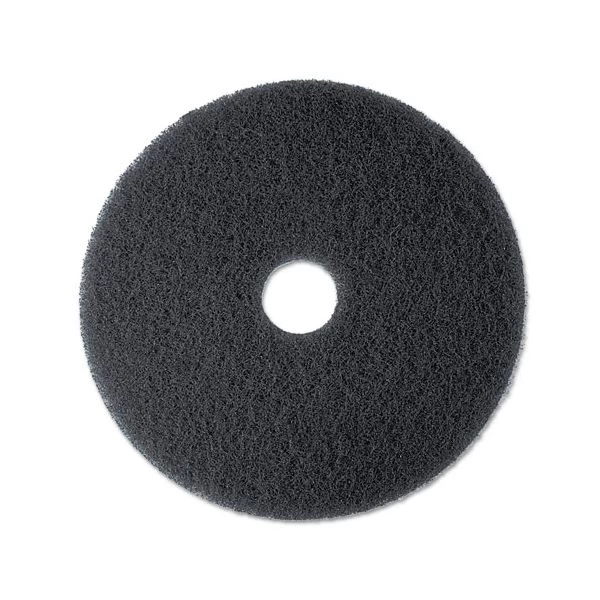 3M Low-Speed High Productivity Floor Pads 7300, 19″ Diameter, Black, 5/Carton – 3M’s most aggressive floor stripping pad, the 3M™ High Productivity Pad 7300, is the best choice for removing four or more coats of finish buildup from hard floors. The stripping pad’s open construction allows stripping solution to circulate through the pad, reducing loading. Continuous nylon filaments, uniformly coated with resin and abrasive particles, provide consistently high performance throughout the life of the pad. For rotary and automatic floor machines. For optimum conformability and pad-to-floor contact, the pad can be backed with a red buffing pad.