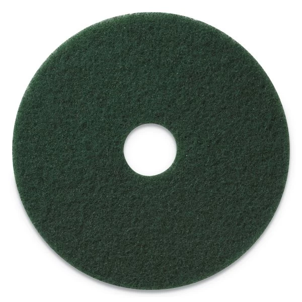 Americo Scrubbing Pads, 20″ Diameter, Green, 5/Carton – Use with a cleaning solution to scrub hard floor surfaces. This pad will aggressively remove dirt and scuff marks from heavily soiled floors. It is also designed for light stripping. For use on standard electric floor machines or automatic scrubbers. Ideal for use on machines speeds up to 350 rpm.