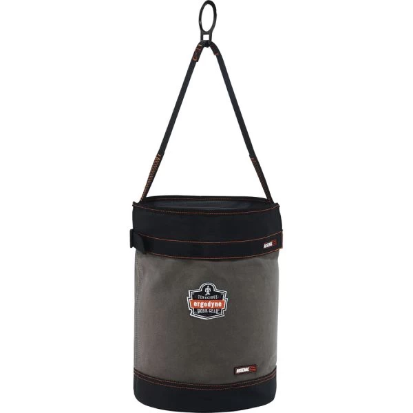 Arsenal 5960T Bucket – 5960T Hoist Bucket with Top and D-Rings hoists tools and equipment while working at heights, including construction, telecom and more. To hold 150 Ib. content weight without strain, webbing handle features leather reinforcement that contributes to high tensile strength. Effortlessly hoist bucket with zinc-plated, alloy steel, D-ring attachment on handle. Two anchoring D-rings provide an extra layer of support for heavy equipment. The handles also anchors lanyards (not included). Detachable safety top keeps equipment protected while equipment is stored. Bucket’s main material is made of durable, 24 oz. canvas. Synthetic leather-reinforced base protects hoist bucket from wear and tear and lasts longer. Plastic-molded top ring provides in/out access to look inside and grab equipment. Patented, nickel-plated, storm drain increases ventilation. Interior pocket supplies separate compartment for organization.