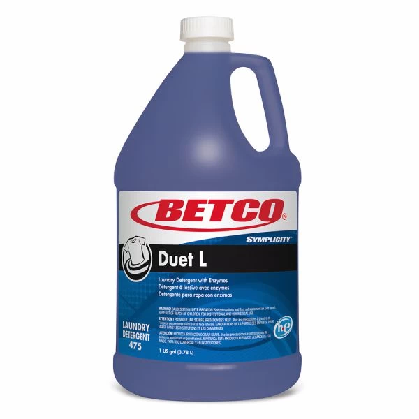 Betco Symplicity Duet L Detergent With Bleach Alternative, Fresh Scent, 128 Oz, Blue – Symplicity Duet L Liquid Laundry Detergent brightens and whitens as it safely lifts stubborn dirt and stains. This all-in-one detergent with enzymes performs well in all water temperatures and is safe for all types of water-fast natural and synthetic fabrics. It is even with a chlorine scavenger to battle fading fabric by preventing chlorine in the water supply. Concentrated formula saves time and delivers cost-effective use. It makes low environmental impact with low VOCs and no phosphorous, APE, NPE or EDTA.