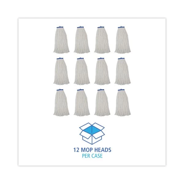 Boardwalk Cut-End Lie-Flat Wet Mop Head, Rayon, 24oz, White, 12/Carton – Boardwalk Cut-End Lie-Flat Economical Mop Head is constructed with premium, four-ply yarn for added absorbency. Built with a standard 1/4″ threaded bolt head for easy screw-in mop head change. The mop heads are held together and wrapped with a galvanized metal outerband for the utmost in durability. The mop lies flat on floor and is designed for use with a lie-flat screw-in mop handle, which is sold separately.