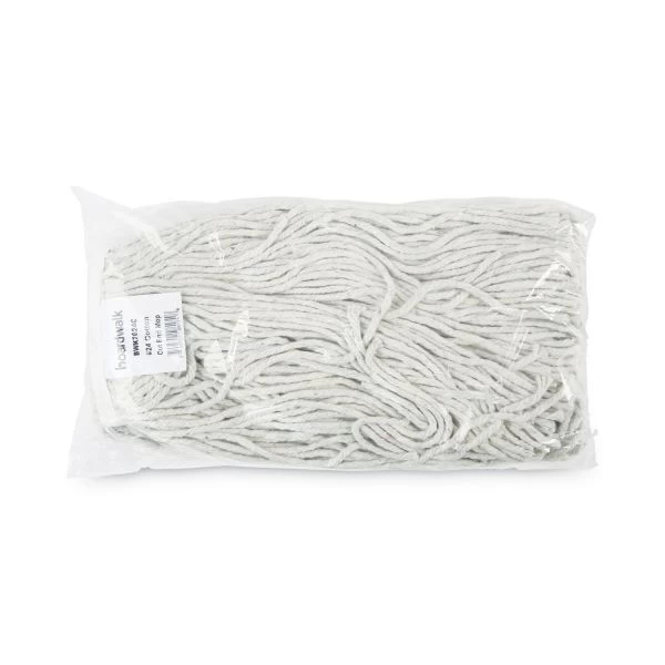 Boardwalk Cut-End Wet Mop Head, Cotton, No. 24, White 12/Carton – Clean up quicker with a high-quality, ultra-absorbent mop head. Cut-end design minimizes snags. Heavy-duty headband ensures secure attachment to handle. For use with clamp-style mop handles and wringer bucket (sold separately). Soft enough to clean delicate floors, yet durable enough to handle harsh chemicals and stains. Great for use in industrial settings, including restrooms, hallways, offices, lobby areas, kitchens, and dining areas.