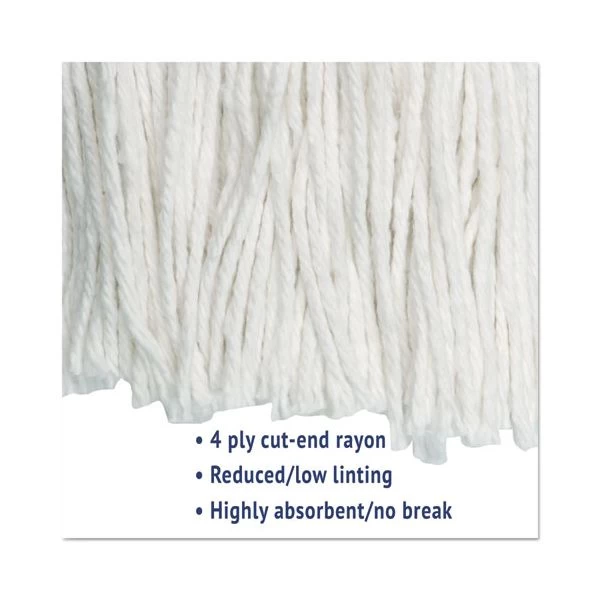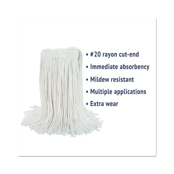 Boardwalk Cut-End Wet Mop Head, Rayon, No. 20, White, 12/Carton – Clean up quicker with a high-quality, ultra-absorbent mop head. Cut-end design minimizes snags. Heavy-duty headband ensures secure attachment to handle. For use with clamp-style mop handles and wringer bucket (sold separately). Soft enough to clean delicate floors, yet durable enough to handle harsh chemicals and stains. Great for use in industrial settings, including restrooms, hallways, offices, lobby areas, kitchens, and dining areas.