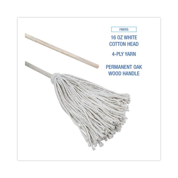 Boardwalk Deck Mop, 48″ Wooden Handle, 16oz Cotton Fiber Head, 6/Carton – Boardwalk Deck Mops are the perfect tool for keeping your deck clean, dry, and maintained. Each mop head is attached to a permanent, solid, natural wood handle for a steady grip. The fuller mop heads are constructed from white, economy, four-ply yarn, for added absorbency. Built with a lightweight design that’s easy to carry and maneuver, making it great for daily use, indoors or outdoors.