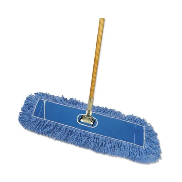 Boardwalk Dry Mopping Kit, 36 x 5 Blue Blended Synthetic Head, 60″ Natural Wood/Metal Handle – Boardwalk Dry Mopping Kit is a hospital grade dust mop kit is an ideal choice for healthcare use. No need to buy multiple components and hope that they all fit together. The dry mop kit includes everything you need to get started and clean a variety of smooth surfaces, including delicate floors. The looped-end mop head with standard slot pocket construction is absorbent and sheds less lint. The kit is easy to assemble, simply slide the wire frame into the slot and attach the handle.