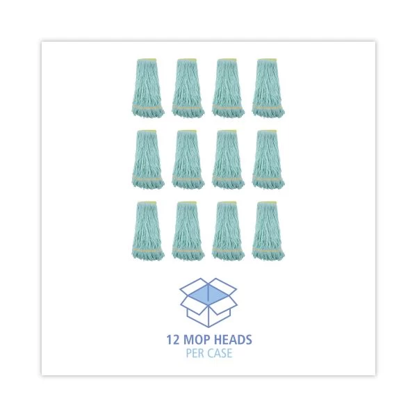 Boardwalk EcoMop Looped-End Mop Head, Recycled Fibers, Extra Large Size, Green, 12/CT – Boardwalk EcoMop Head is a strong, four-ply mop head with engineered fibers made entirely from recycled material. The durable mop head with added absorbency holds more than four times its weight in water, saving you time and energy while mopping. Rinse and wring less with the oversized head. The looped ends reduce unraveling, fraying, and lint so the mop head lasts longer. Handle sold separately.