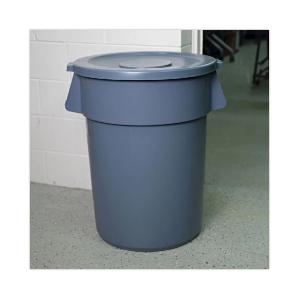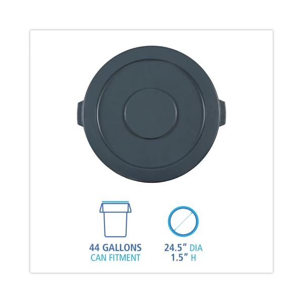 Boardwalk Lids for 44 gal Waste Receptacles, Flat-Top, Round, Plastic Gray – Durable lid with a flat-top design. Lid snaps onto waste receptacles for a tight seal. Designed for use with Boardwalk