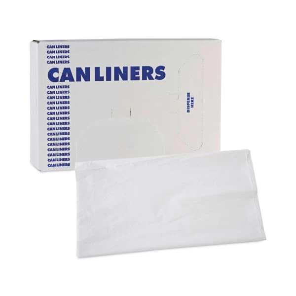 Boardwalk Linear Low Density Industrial Can Liners, 56 gal, 0.9 mil, 43 x 47, White, 100/Carton – Linear, low-density polyethylene provides industrial strength performance. Puncture and tear resistance for added durability. Sturdy, star-seal bottom helps prevent leaks and keep heavier loads inside the bag. Individually folded for quick and easy dispensing. A quality can liner that provides trusted waste collection at an economical price. Individually folded in carton for quick and easy dispensing.