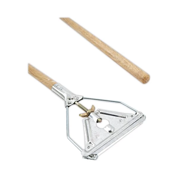 Boardwalk Quick Change Metal Head Wooden Mop Handle, Junior, 0.88″ dia x 54″, Natural – Boardwalk Quick Change Metal Head Mop Handle offers the flexibility of changing a mop head, but without the hassle. To switch heads, simply slide the side gate open and the handle’s thumb wheel clamps the mop firmly in place. Solid wood, slightly lacquered handle with rounded tip for a comfortable grip. Ideal for use with 1-inch headband mops, which are sold separately.