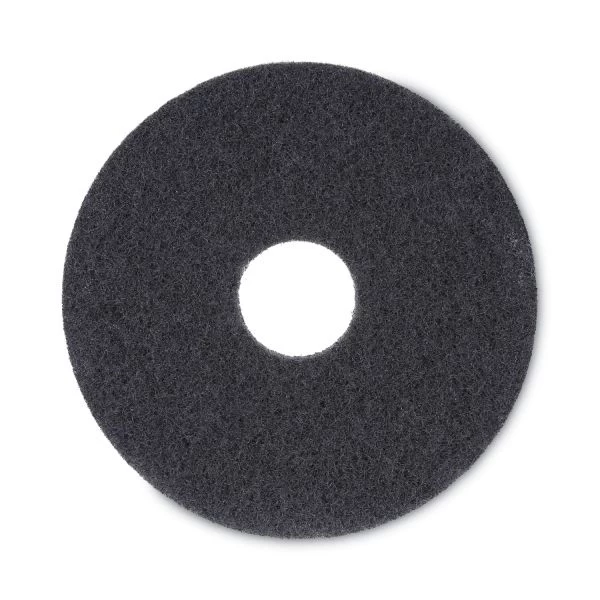 Boardwalk Standard Stripping Floor Pads, 13″ Diameter, Black, 5/Carton – This floor stripping pad is the valuable choice you can rely on for long-lasting stripping of finish, dirt, and buildup. Clean heavily soiled surfaces with ease by using a rotary machine, stripping pad, and appropriate chemicals. The abrasive pad works to remove stubborn stains and finishes. For use with rotary machines (Speed of 175 to 600 RPM). Color-coded for easy job identification.