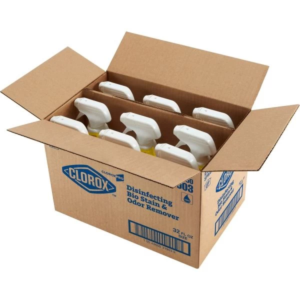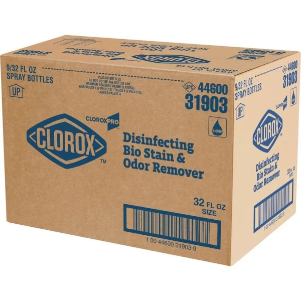 CloroxPro Disinfecting Bio Stain & Odor Remover Spray – CloroxPro Disinfecting Bio Stain and Odor Remover disinfects and removes the toughest odors and stains in one step. This bleach-free, stain and odor remover uses hydrogen peroxide technology to kill HIV, herpes and flu virus in 30 seconds, kills hepatitis B and hepatitis C in 1 minute, and kills norovirus, E. coli, Salmonella and MRSA in 5 minutes. It meets EPA criteria for use against SARS-CoV-2, the virus that causes COVID-19. Compliant with OSHA Bloodborne pathogens standard, this stain and odor remover works on stains from blood, feces, vomit, sweat, saliva and urine. Versatile disinfectant can be used to clean many different hard and soft surfaces such as walls, tile, grout, concrete, carpet, fabrics, upholstery, toilets, countertops and mattresses, and it can even be used as a pre-treatment for laundry. It is ideal for hotels, daycare centers, schools, offices, restaurants and other commercial facilities. Packaging may vary.