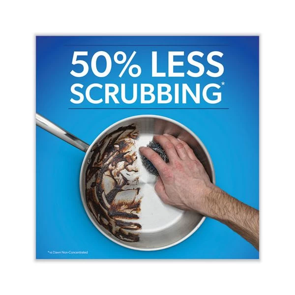 - Dishwashing detergent with long-lasting suds cleans 58% more greasy pots and pans per sink vs. Dawn non-concentrated.