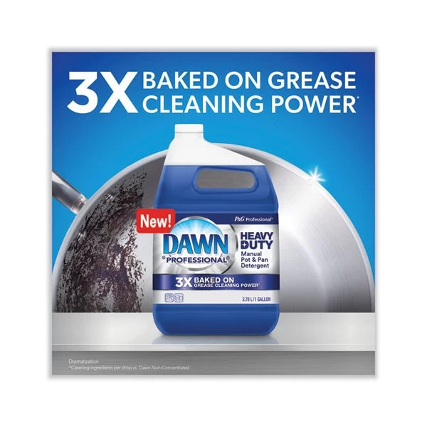 Dawn Professional Heavy-Duty Manual Pot/Pan Dish Detergent, Original Scent, 1 gal Bottle, 2/Carton – Dawn Professional Heavy-Duty Manual Pot and Pan Detergent is a highly concentrated liquid dishwashing soap that has the grease-fighting power of Dawn and is specifically formulated for tough jobs at your business. This liquid dish soap is specially formulated to help remove greasy food soils from pots, pans and utensils. Dawn dish detergent can work as an all-purpose cleaner for a variety of task areas, including three-compartment sinks (wash sink), countertops, dining areas, cooler doors, windows (outside and inside), portable equipment, trash receptacles, coffeemakers, drive-thru menu boards, and tile walls.