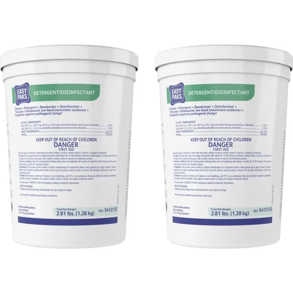 Diversey Easy Paks Detergent/Disinfectant – Multisurface detergent/disinfectant in easy-to-use packets lets you quickly clean surfaces without any guesswork, waste or messy cleanup. Effervescing action ensures that both the cleaner and packet will dissolve completely in water. Versatile formula is effective against bacteria and viruses including HIV-1 (AIDS virus) and controls mildew. Detergent/disinfectant is designed for use on inanimate, hard surfaces such as walls, floors, sink tops, tables and more.