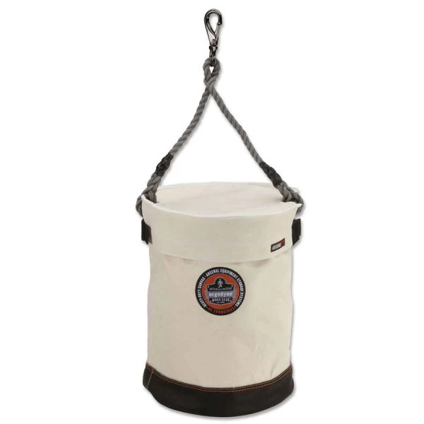 Ergodyne Arsenal 5740T Leather Bottom Bucket – Arsenal 5740T Leather Bottom Bucket with top and nickel-pated swivel clip features a high wall and heavy-duty construction for strength and durability. Patented safety top is detachable and included for safer working conditions. Molded, plastic top ring maintains a wide opening for viewing and accessing contents. Interior pocket offers extra storage. Hoist bucket is made with 20 oz. canvas, leather-reinforced base and heavy-gauge, nylon stitching. Rope handle is made of polypropylene for reliable lifting and is resistant to rot, mold, mildew and moisture. Maximum safe working capacity is 150 lb.