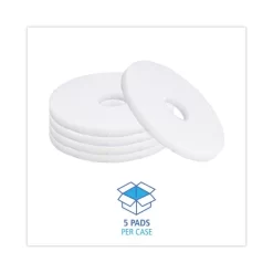 Boardwalk Standard Polishing Floor Pads, 13″ Diameter, White, 5/Carton