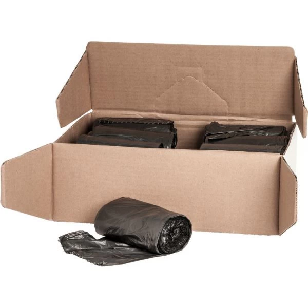 Genuine Joe 33 Gallon Trash Bags, Black, Low-Density, 0.60 mil, 33 gallon, 250/Carton – Economy, low-density can liners offer superior puncture-resistance and stretch. Star-bottom construction eliminates bottom seal leaks. Can liners are packed in convenient, perforated rolls. Small-count coreless rolls are ideal for portion control and minimizing storage.