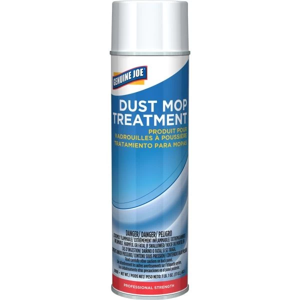 Genuine Joe Dust Mop Treatment – This oil-based treatment quickly attracts dust and dirt to mops, cloths and mitts. It eliminates the annoyance of flying dust while you’re cleaning. Dust Mop Treatment reduces possible inhalation and prevents resettling. It contains special ingredients that convert dust into heavy lint that shakes out or can also be washed out easily. A routine treatment program will extend the life of the floor finish and help maintain the gloss. Use on finished resilient asphalt, vinyl, rubber and linoleum floors.