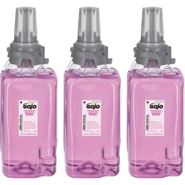 GOJO Antibacterial Foam Hand Wash Refill, For ADX-12 Dispenser, Plum Scent, 1,250 mL Refill, 3/Carton – High-performance, antibacterial hand soap offers luxurious lather and an appealing plum fragrance. Attractive purple color. Enriched with a moisturizer, natural extract and skin conditioner. USDA certified Biobased formulation.