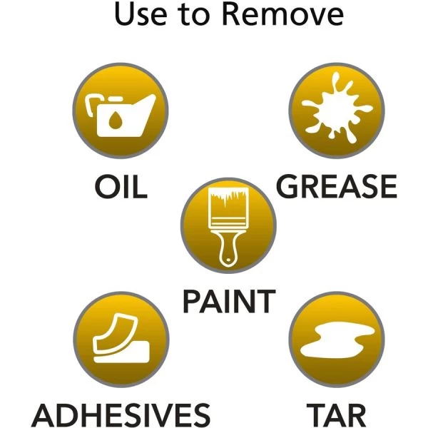 - No harsh solvents but still effective on tar, oil, grease and asphalt