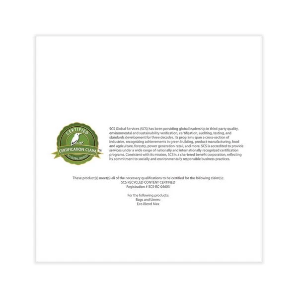Heritage Eco Blend Max Can Liners, 33 gal, 0.8 mil, 33″ x 39″, Clear, 25 Bags/Roll, 8 Rolls/Carton – Our goal for innovation in can liners is to manage waste, not create it. These can liners are engineered to reduce the waste destined for our landfills. That is why we strive to use recycled content in our can liners to replace virgin plastic with material recovered from our waste stream. This Eco Blend Max can liner uses rightsizing dimensions designed to fit most common cans.