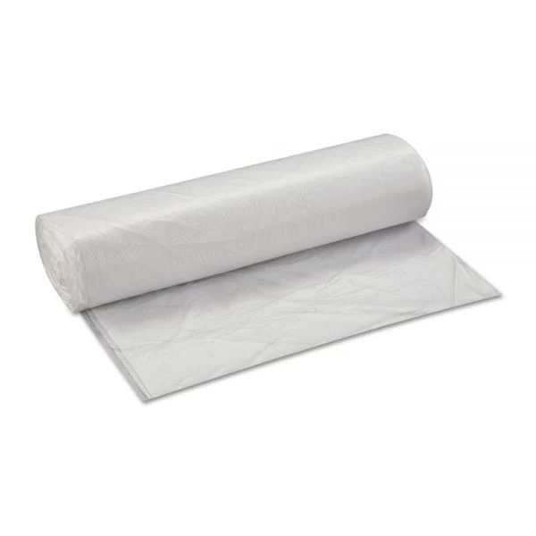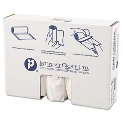 Inteplast Group High-Density Interleaved Commercial Can Liners, 45 gal, 12 microns, 40″ x 48″, Clear, 25 Bags/Roll, 10 Rolls/Carton – Interleaved for easy dispensing. Made from high quality resins for reliability and consistency. Star-sealed bottom distributes weight evenly and creates a seal up to eight times stronger than the film itself. Innovative “clamshell” box with E-Z identification eliminates confusion.
