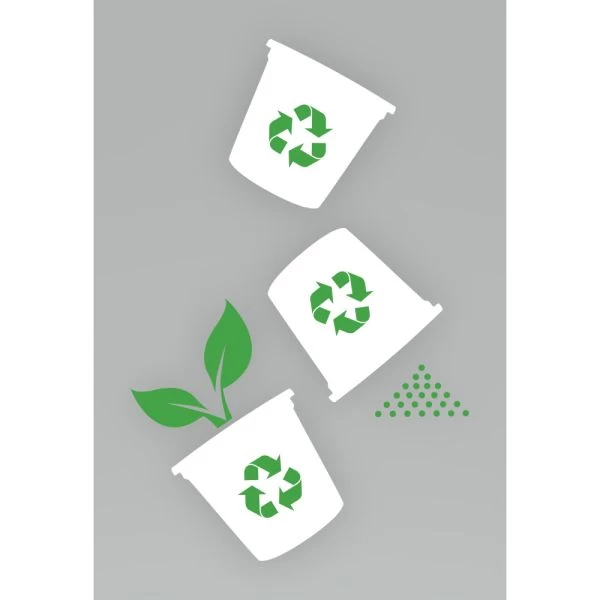- Plastic and aluminum are recycled, coffee/tea grounds and filters become organic compost.