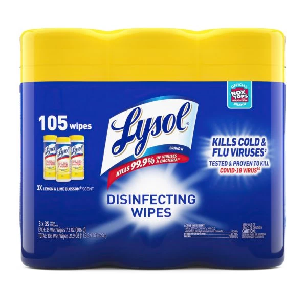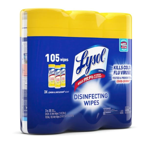 LYSOL Brand Disinfecting Wipes, 1-Ply, 7 x 7.25, Lemon and Lime Blossom, White, 35 Wipes/Canister, 3 Canisters/Pack, 4 Packs/Carton – Boost customer confidence with the recognizable canister of Lysol Disinfecting Wipes that’s ideal for high-visibility locations. Pre-moistened disinfecting wipes kill 99.9% of viruses and bacteria, including the virus that causes COVID-19 when used as directed on hard, non-porous surfaces. Hospital-type disinfection works on a variety of surfaces, including electronics. Quickly clean and disinfect high-touch germ hot spots to help protect your customers and staff. Clean up and keep moving with packaging that’s easy to open, dispense, and store.