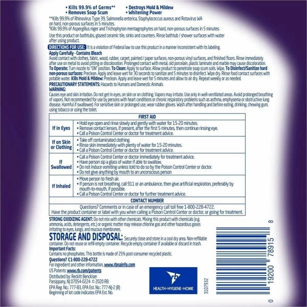 Lysol Mold/Mildew Remover – Lysol Mold and Mildew Remover with bleach whitens and removes mold and mildew stains. It is useful in the removal of soap scum and tough spots and stains. When used as directed, this mold and mildew remove kills 99.9 percent of viruses and bacteria. The nonabrasive formula will not harm plumbing or septic systems. Use on glazed ceramic tiles, bathtubs, toilets, sinks, counters, food carts, chrome (nonmedical) and stainless steel (nonmedical).