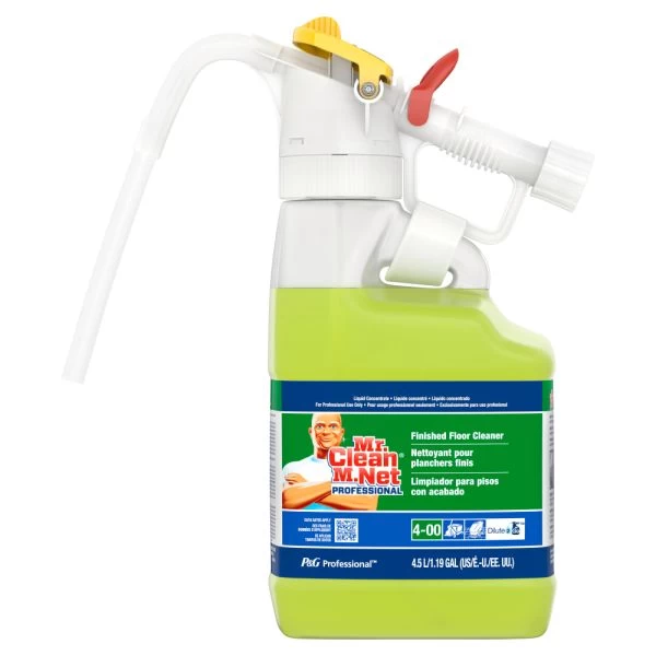 Mr. Clean Professional Dilute 2 Go Finished Floor Cleaner, 4.5 L, Green – Great for commercial spaces, Mr. Clean Professional Dilute 2 Go Finished Floor Cleaner helps keep your floors and other surfaces clean. The solution is designed for vinyl tile, ceramic tile, terrazzo and varnished hardwood and can even be used on tables, countertops and walls.