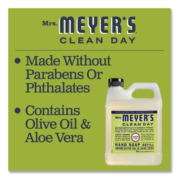 Mrs. Meyer’s Clean Day Liquid Hand Soap, Lemon, 33 oz, 6/Carton – Mrs. Meyer’s Clean Day hand soaps are specifically made to clean and freshen hands without drying, while also providing a special, singular garden-inspired scent. This hard-working hand soap formula contains olive oil, aloe vera, and essential oils, that clean and freshen hands. These thoughtfully chosen ingredients create a non-drying yet softening soap for busy hands. Made without parabens, phthalates, animal-derived ingredients, and always a cruelty free soap. Mrs. Meyer’s—rooted in goodness.