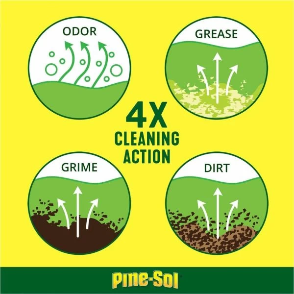 Pine-Sol All Purpose Multi-Surface Cleaner – Pine-Sol All Purpose Cleaner gives you four times the cleaning action, cutting through dirt, grime and grease and deodorizing your home with a great, long-lasting scent. This concentrated formula cleaner can tackle any challenge. Simply mix Pine-Sol with water at different strengths to adjust your cleaning power each time, unlike premixed cleaners. Pine-Sol All Purpose Cleaner is safe to use on most hard nonporous surfaces, including finished hardwood, ceramic tile, linoleum and plastic. It leaves no sticky residue. With the power of Pine-Sol on your side, you only have to clean once to get the job done right.