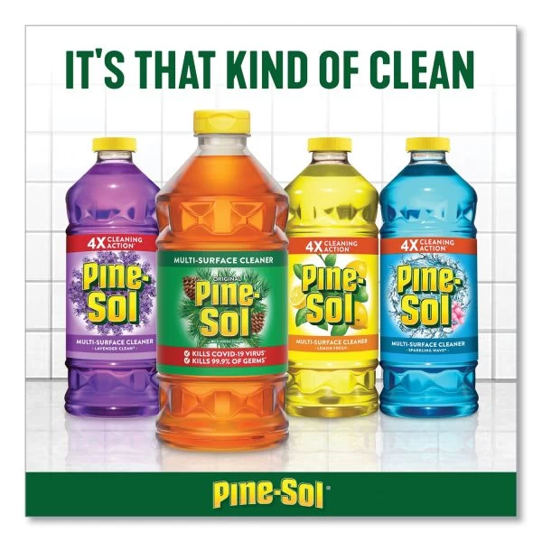 Pine-Sol Multi-Surface Cleaner, Lemon Fresh, 28 oz Bottle, 12/Carton – Fill your home with an invigorating, welcoming scent when you choose vibrant Lemon Fresh. Pretty and powerful, it cuts through the toughest, greasiest, grimiest messes, leaving behind a clean you can smell, see and feel. Though known for it’s amazing performance on floors and walls, Pine-Sol® is also great throughout kitchens, bathrooms, bedrooms and boardrooms. You can even use it as a laundry stain-remover and detergent booster! Use it at full strength for tough jobs or diluted for everyday cleaning tasks (see label for directions).