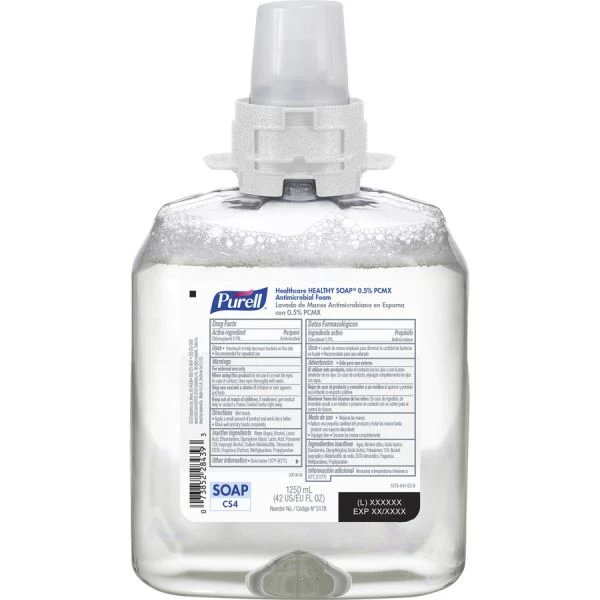 PURELL CS4 HEALTHY SOAP 0.5% PCMX Antimirobial Foam Refill – Antimicrobial foam soap fits in your PURELL CS4 Push-Style Soap Dispenser. PURELL Healthcare Healthy Soap 0.5 percent PCMX Antimicrobial Foam Handwash is effective in killing the most common bacteria found in healthcare environments. It helps reduce germs on skin that could cause disease. High-efficacy, high-quality, rich foaming formulation encourages frequent handwashing. It is designed for frequent use in healthcare environment among healthcare personnel and patients. Dermatologist-tested, triclosan-free formulation is dye-free with pleasant floral fragrance. Foam soap rinses clean for easy gloving. It is compatible with nitrile, latex and vinyl gloves. Sanitary Sealed PET refill helps prevent contamination and is easily recycled.