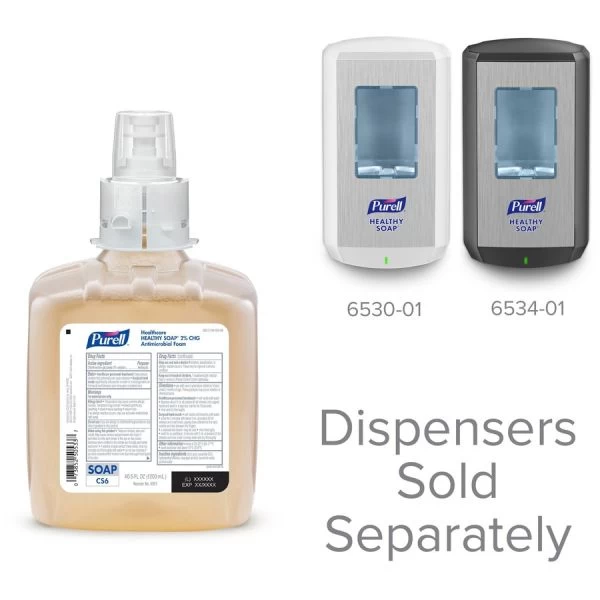 PURELL CS6 Healthcare HEALTHY SOAP 2% CHG Antimicrobial Foam – Designed for PURELL CS6 Touch-Free Soap Dispensers, this highly effective, antimicrobial handwash is tough on germs and gentle on hands. PURELL Healthcare Healthy Soap 2 percent CHG Antimicrobial Foam exceeds the FDA’s Healthcare Personnel Handwash requirements and is proven as mild as GOJO’s top-selling, nonantimicrobial soaps. Handwash is ideal for hospital-wide use or high-acuity areas. It is nonirritating, hypoallergenic and dermatologist-tested and contains Chlorhexidine Gluconate 2 percent – a broad-spectrum antimicrobial agent that kills pathogenic, Gram-positive and Gram-negative bacteria. Mild, dye-free and fragrance-free formulation with rich lather helps maintain the skin’s natural oils and moisture. Sanitary Sealed PET refill is easily recycled.