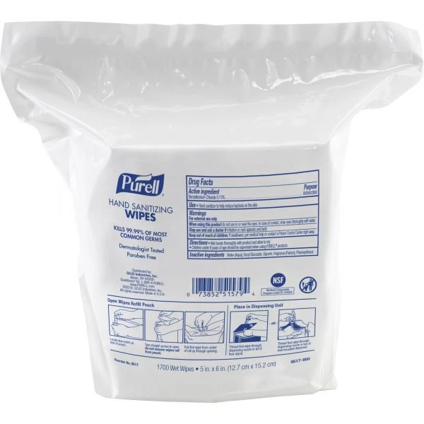 PURELL Refill Pouch Hand Sanitizing Wipes – High-capacity refill pouch for dispensers is ideal for all high-traffic locations. Durable, textured wipes remove light soils and dirt from hands. They kill 99.99 percent of most common germs that may cause illness. They are convenient for use whenever soap and water are not available. PURELL Hand Sanitizing Wipes are ideal for grocery stores, restaurants, offices, health clubs and food processors. Use this refill pouch in PURELL High-Capacity Wipes Dispensers. Wipes are dermatologist-tested and alcohol-free.