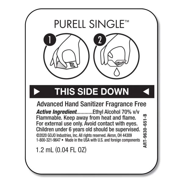 PURELL Single Use Advanced Gel Hand Sanitizer, 1.2 mL, Packet, Fragrance-Free, 2,000/Carton – Help those you care for kill germs on the go with PURELL SINGLES Advanced Hand Sanitizer Gel, also known as PURELL PERSONALS Advanced Hand Sanitizer Gel. Just bend the packet and squirt with one hand, for a fun and refreshing cleaning experience. Gives you the perfect amount of hand sanitizer to kill 99.99% of most common germs that may cause illness—anywhere, anytime. With four unique skin conditioners, it’s gentle on hands. PURELL PERSONALS packets fit anywhere—pocket, wallet, car, cell phone case, your smallest bag—and the no-leak durable design means mess-free protection from germs.
