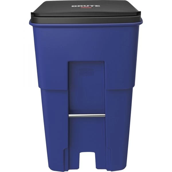 Rubbermaid Commercial Brute Rollout Container, Square, Plastic, 95 gal, Blue – The Rubbermaid Commercial BRUTE Recycling Roll-Out Trash Can with Lid offers easy mobility for general refuse collection and material handling. These trash cans include heavy-duty, 8-inch wheels that afford easy mobility, even over steps or curbing. The attached hinged lid fits tightly, swings back, and locks in place. Tough BRUTE trash can construction for a long life. The garbage can features rounded corners and smooth contours for easy cleaning. The molded-in axle retainer adds strength.
