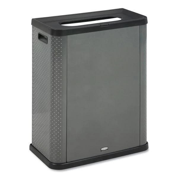 Rubbermaid Commercial Elevate Decorative Refuse Container, Landfill, 23 gal, Plastic/Metal, Pearl Dark Gray – The new Rubbermaid Commercial Products Elevate decorative containers offer a classic, timeless design that will transform the space and enhance the overall guest experience, without sacrificing budget. Unique three-sided container transforms Slim Jim receptacles into streamlined, decorative pieces, or can be used as a standalone container with retainer bands to secure interior liners. Elevate ships flat allowing for more efficient and cost-effective shipping.