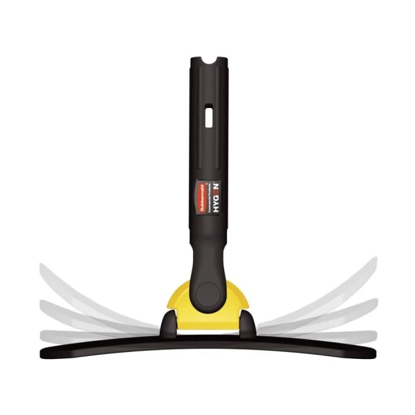 Rubbermaid Commercial HYGEN 11″ Frame Dusting System – Part of the Rubbermaid Commercial Hygen Cleaning System, this 11″ Flexible Frame bends to conform to curved and flat surfaces. With mop attached, the arc shape pulls dirt, hair and debris toward the center for better pickup. Proprietary flexible compound will not crack or split, even when used with bleach or peroxide. Quick-connect mechanism converts handheld duster to high-reach tool with the use of Rubbermaid Quick-Connect handles and extension poles. Use with Rubbermaid mop covers Q861, Q871, Q881 and 891.