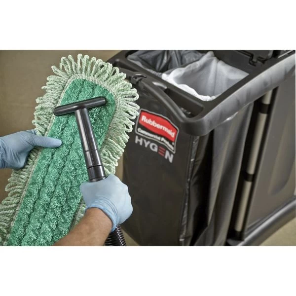 Rubbermaid Commercial HYGEN HYGEN Dust Mop Heads With Fringe, Green, 60 in., Microfiber, Cut-End – 100% microfiber dust mop collects and holds large dust particles, debris and dirt mechanically and electrostatically for superior dusting results. Microfibers ensure outstanding dust and microbe removal from all types of cleaning surfaces. Advanced hook-and-loop backing holds-up under harsh laundering conditions and attaches pads more securely.
