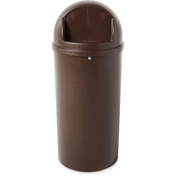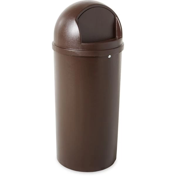 Rubbermaid Commercial Marshal Classic Container, 15 gal, Plastic, Brown – This Marshal® has arrived to help clean up the town. Practical good looks combine with fire safety in this durable plastic container. Push door conceals waste. Textured finish helps minimize appearance of surface scratches. Includes retainer hardware for securing and concealing can liners. For indoor use.