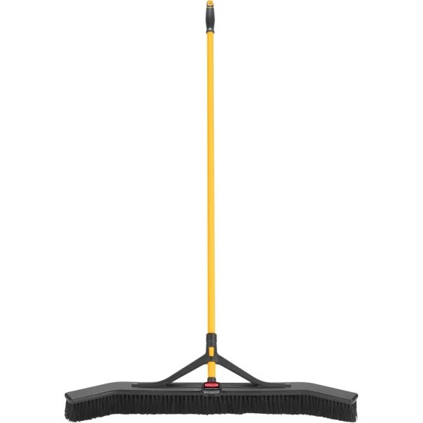 Rubbermaid Commercial Maximizer Push-To-Center 36″ Broom – Maximizer Push to Center Broom features angled sides to capture more debris per stroke vs. standard push brooms. Durable polypropylene bristles can be used on smooth and rough surfaces, effectively sweeping different debris types. The 36″ wide polypropylene foam block resists cracking, splitting warping and rotting. Lightweight steel handle with supporting yoke holds up to repeated use. Molded comfort handle reduces strain. Built-in hang hole allows convenient storage.