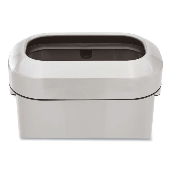 Rubbermaid Commercial Refine Series Waste Receptacle, 15 gal, Plastic/Stainless Steel – Featuring a classic design and fingerprint-resistant stainless steel, the Refine waste container fits seamlessly into any commercial space for a discreet look that enhances the overall environment. Integrated handles improve grip and ergonomics, reducing user strain and improving efficiency when emptying containers. Commercial grade material is durable and ensures the receptacle withstands the rigors of everyday use. Anti-skid feet ensure the surrounding environment stays beautiful.