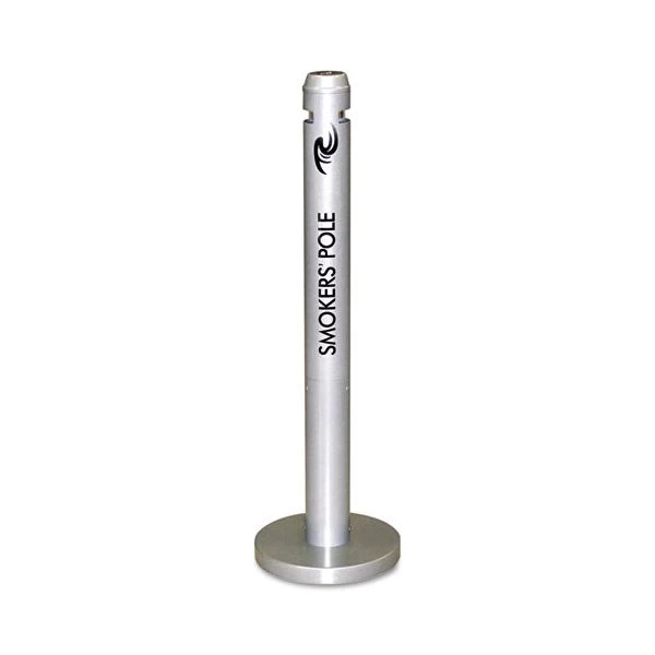 Rubbermaid Commercial Smoker’s Pole, Round, Steel, 0.9 gal, 4 dia x 41h, Silver – Smoker’s Pole offers an oxygen-restricting design, weather-resistant powder-coat finish and durable aluminum construction. Freestanding receptacle is a simple space-saving solution to control smokers’ waste. Recessed extinguishing screen prevents ashes from falling to the ground. Easy-to-empty, two-part ergonomic design requires no tools and minimal bending. Freestanding Smoker’s Pole has a 14-1/2″ base. ADA-compliant receptacle is made from 30 percent recycled material.