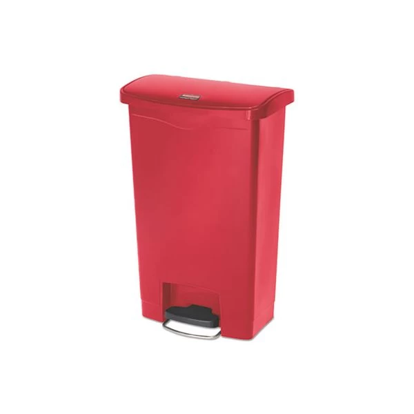 Rubbermaid Commercial Streamline Resin Step-On Container, Front Step Style, 13 gal, Polyethylene, Red – Designed to satisfy the diverse needs of any facility. Maximizes space efficiency with a small footprint and slim profile. Fits in even the tightest spaces. Internal hinge design prevents wall damage. Quiet and controlled lid-closure minimizes noise. Liner retainer band and cinch easily and securely holds can liners. Increased foot pedal clearance for easier access and operation.
