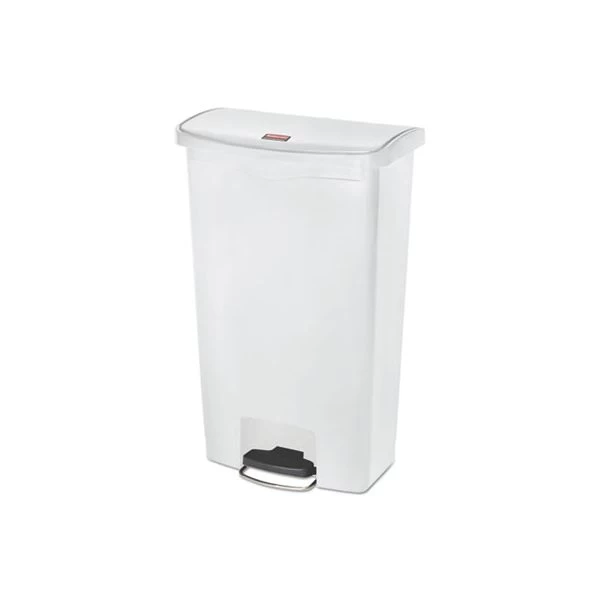 Rubbermaid Commercial Streamline Resin Step-On Container, Front Step Style, 18 gal, Polyethylene, White – Designed to satisfy the diverse needs of any facility. Maximizes space efficiency with a small footprint and slim profile. Fits in even the tightest spaces. Internal hinge design prevents wall damage. Quiet and controlled lid-closure minimizes noise. Liner retainer band and cinch easily and securely holds can liners. Increased foot pedal clearance for easier access and operation.