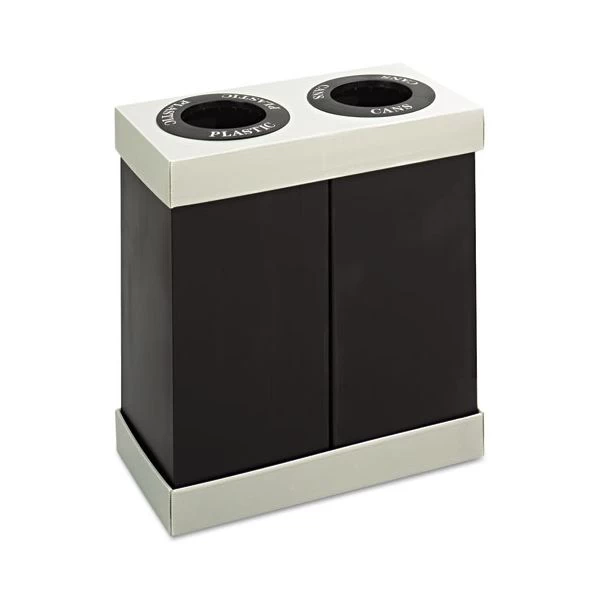 Safco At-Your-Disposal Recycling Center, Two 56 gal Bins, Polyethylene, Black – Recycling center features two separate 28 gallon bins under one lid to help keep recyclables sorted and all in one place. Decals are included to help customize your recycling center to fit your office needs. Recycling center is 100 percent recyclable and is made of impact-resistant and moisture-resistant polyethylene. The top and bottom are made of cardboard.