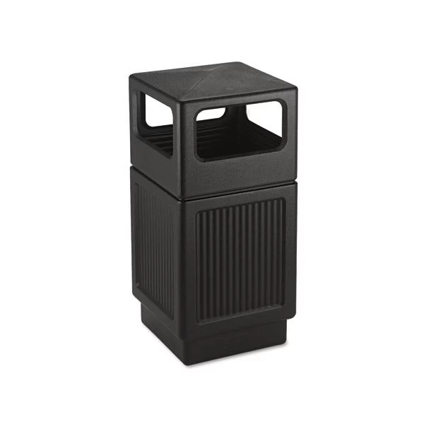 Safco Canmeleon Recessed Panel Receptacles, Side-Open, 38 gal, Polyethylene, Black – Recessed panel design for any first impression areas. High-density polyethylene plastic will not chip or dent. UV inhibitors limit fading in sunlight. Adaptable for anchoring and weighting devices. Uses standard 32″ x 44″ trash bags. Telescoping base hides bag. Panels feature fluted design with a recessed bottom.